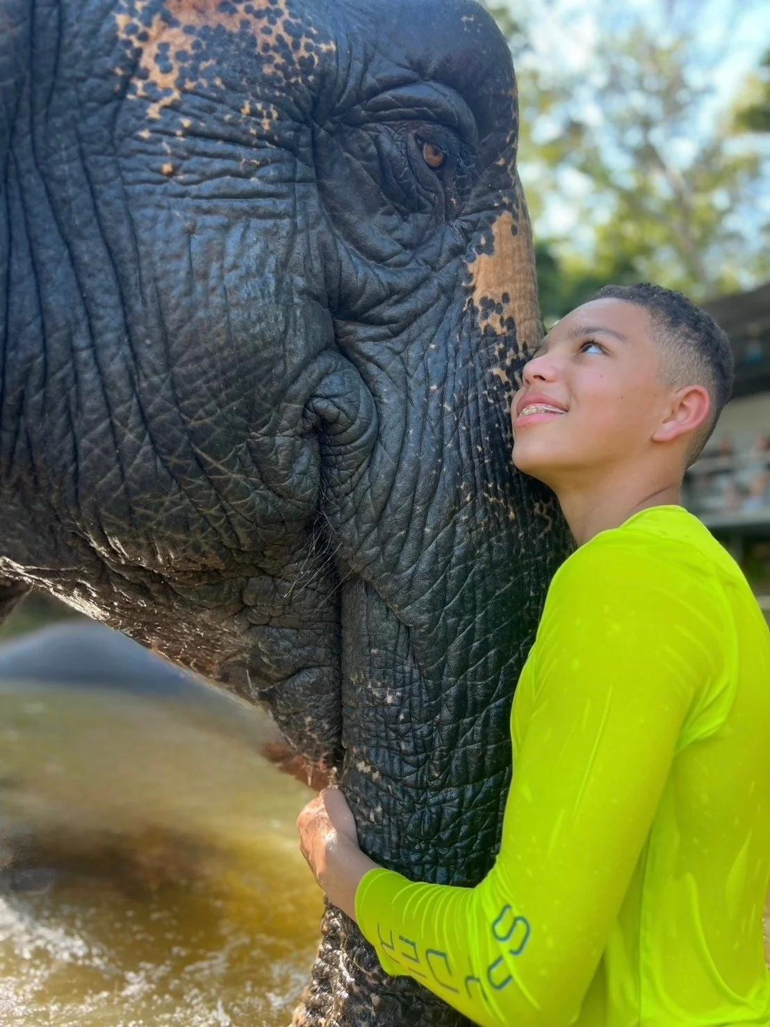 Family trip to Lake Phuket Elephant Home in Thailand. This was a moment of connection and appreciation for wildlife.